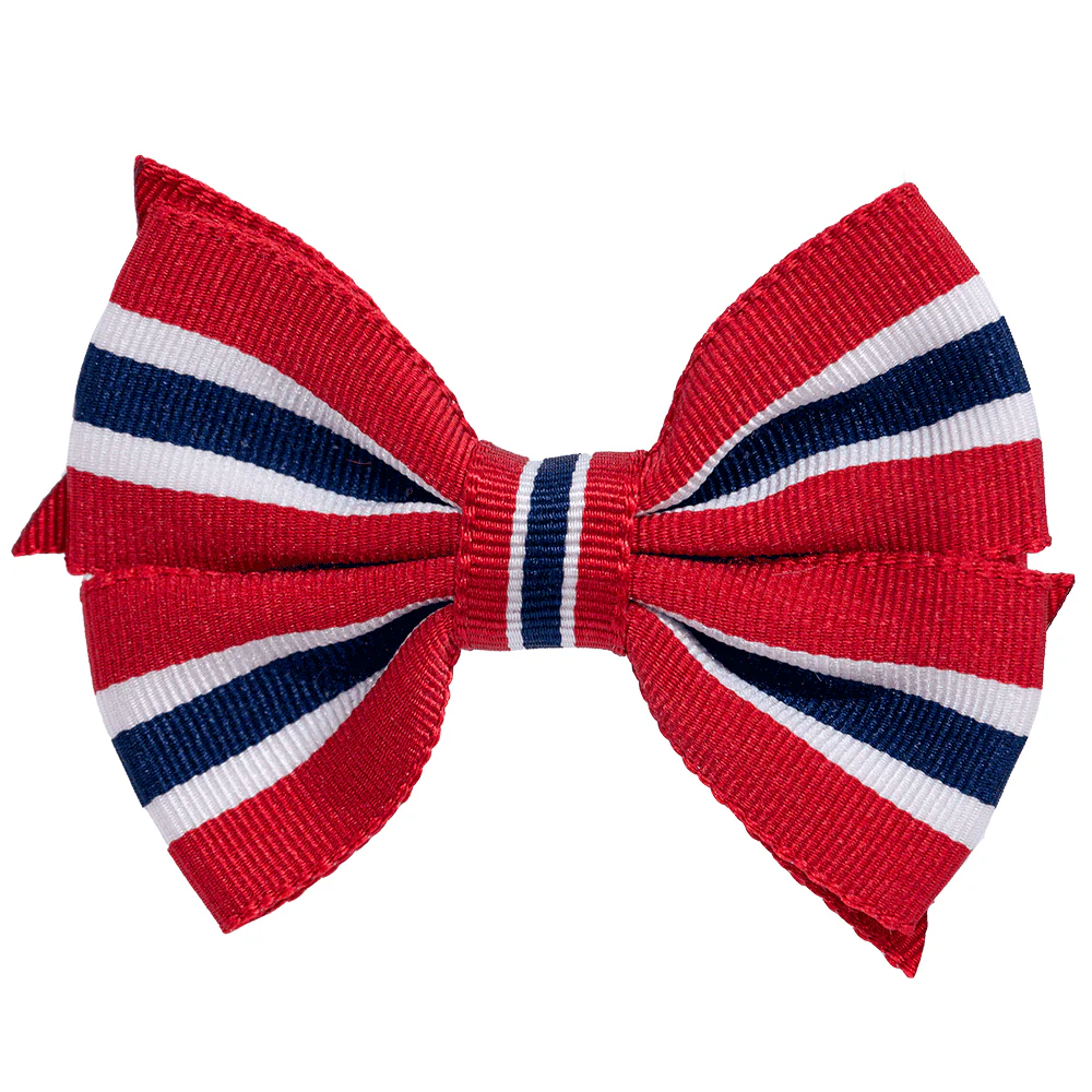 Hårspenne med sløyfe i ripsbånd  i 17 mai farger.