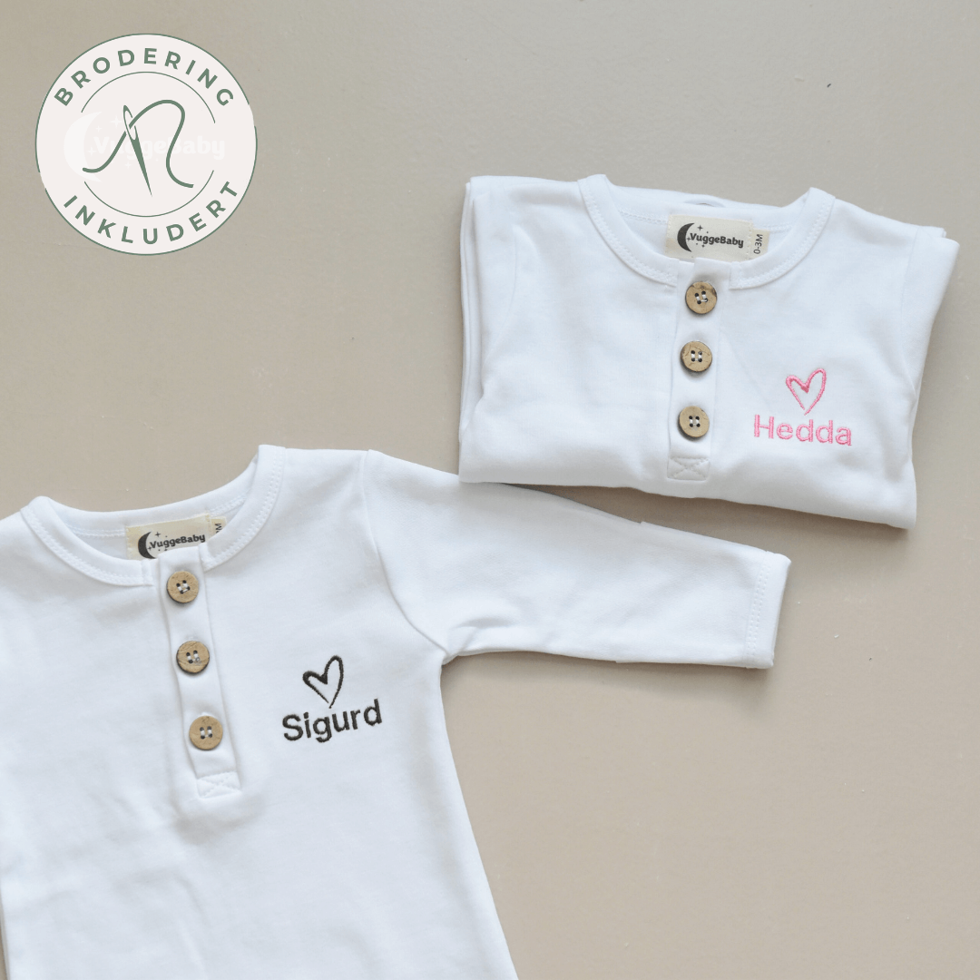 En nydelig og personlig pysjamas laget i 100 % økologisk bomull og minimalistisk stil. Den klassiske hvite fargen og det myke, pustende stoffet gjør pysjamasen perfekt for babyens sensitive hud. Med brodert navn blir den en helt unik nattdrakt, like fin som den er praktisk.