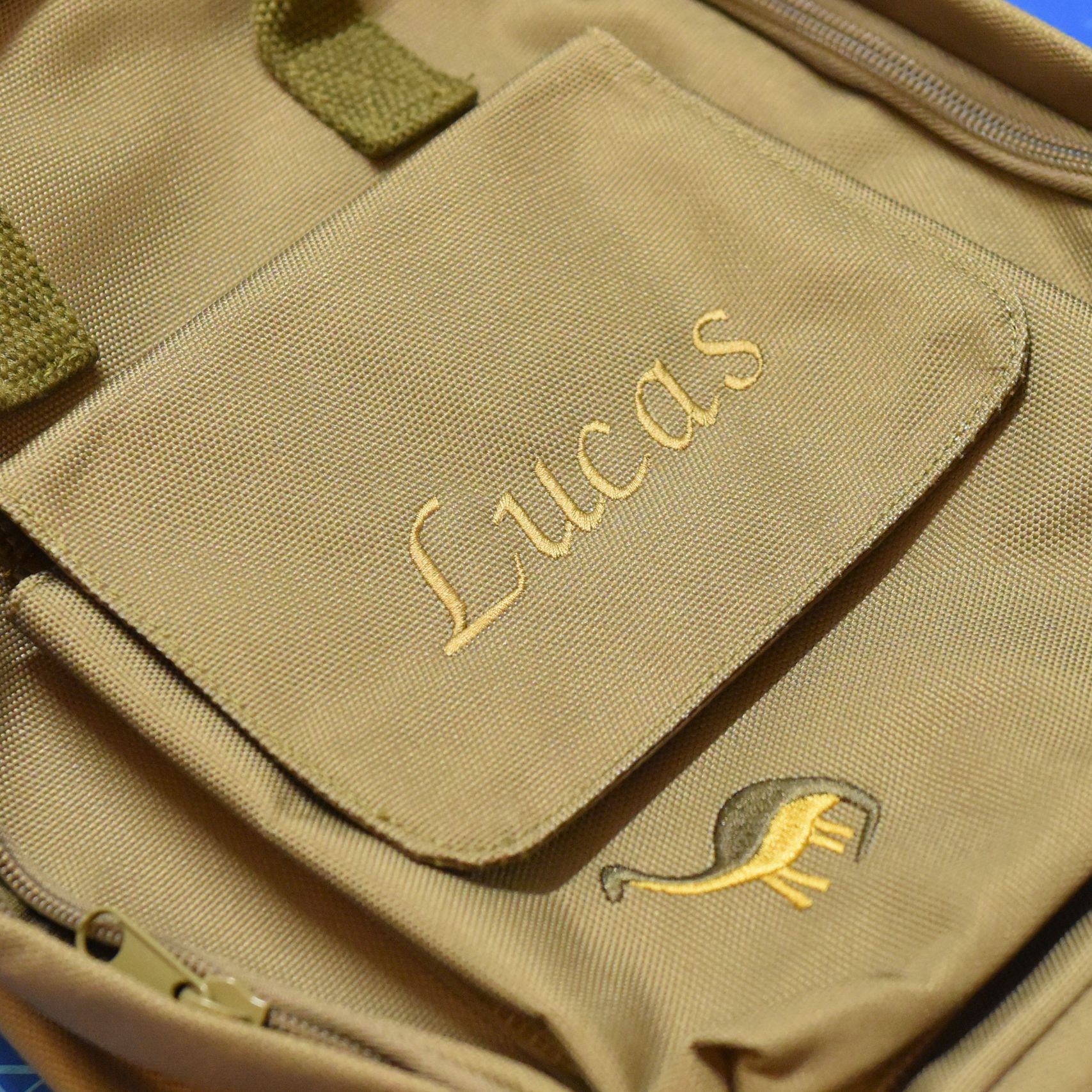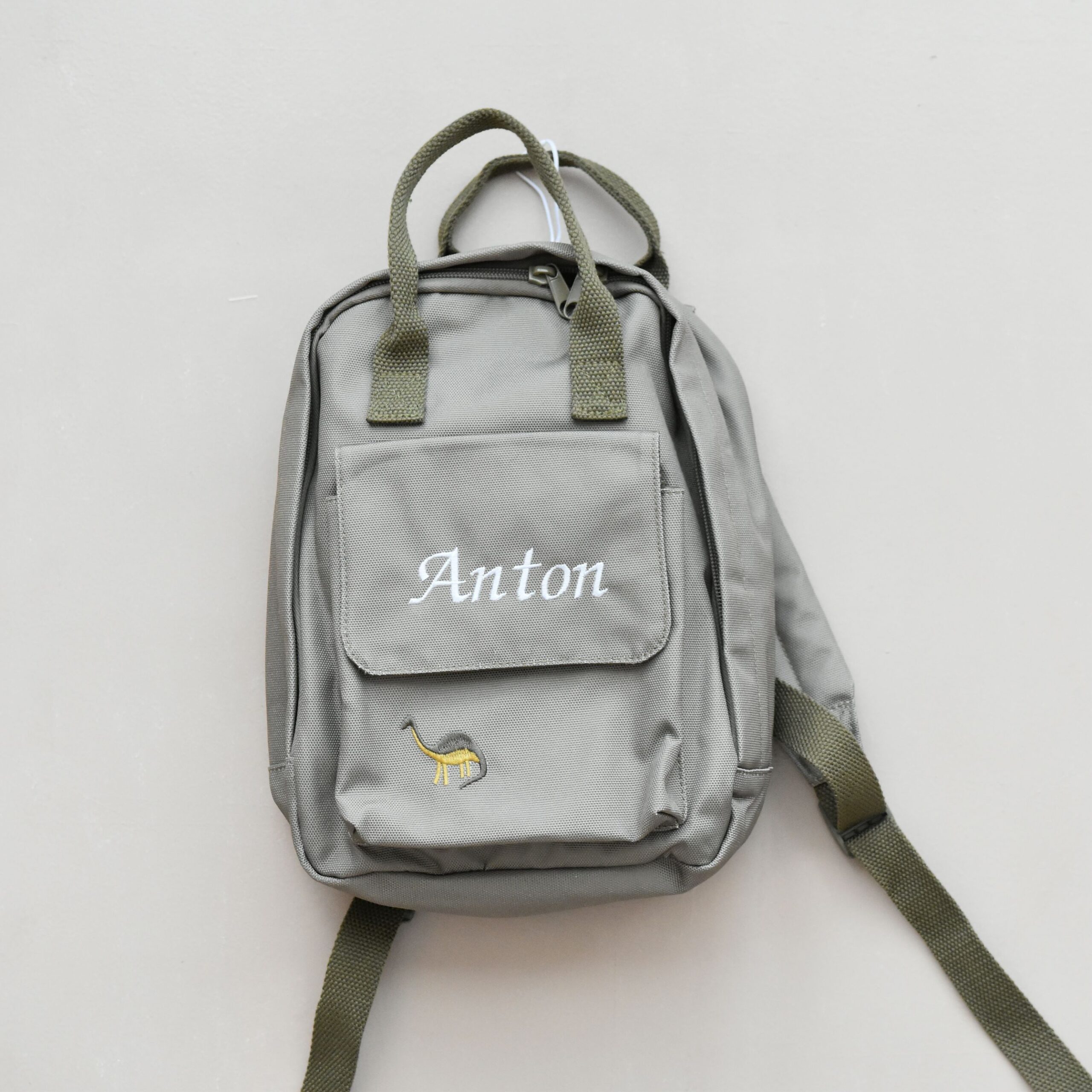 Name It barnehagesekk med navn | Olivengrønn og Sand farge | Brodering inkludert i prisen