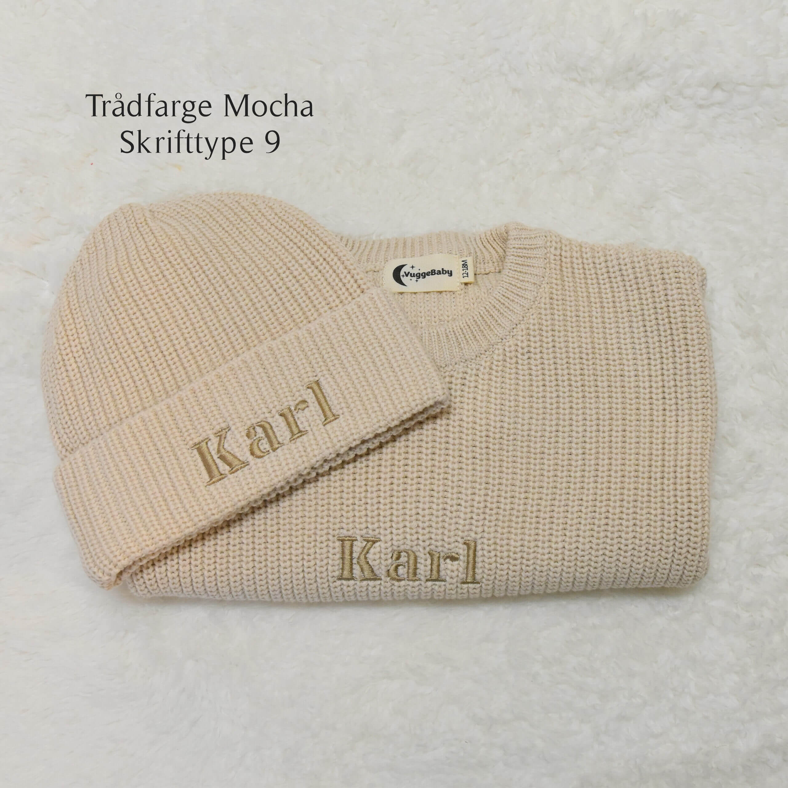 Øko strikkegenser med navn fra Vuggebaby.