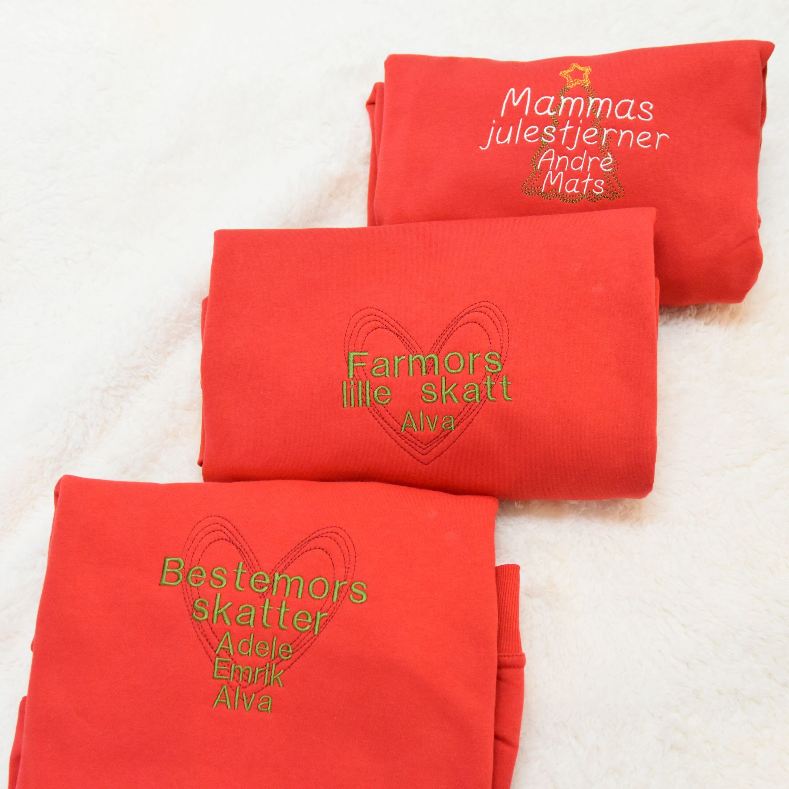 Gjør genseren helt unik med vår personlige broderingen. Velg mellom flere juletemaer som;