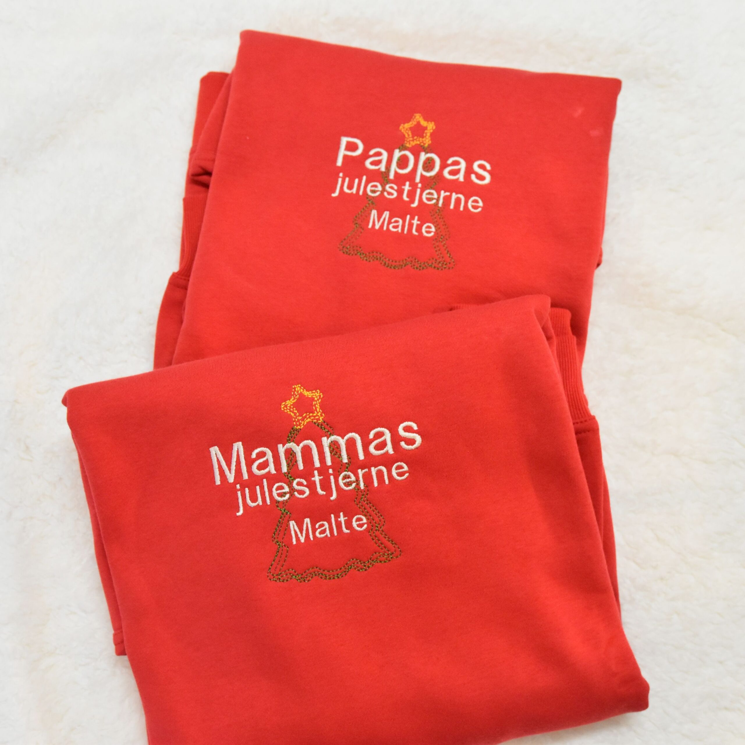 Legg til barnas navn for en personlig og minneverdig genser som passer hele familien. Barnas navn blir brodert under hovedteksten og med mindre bokstaver enn hovedtekst.