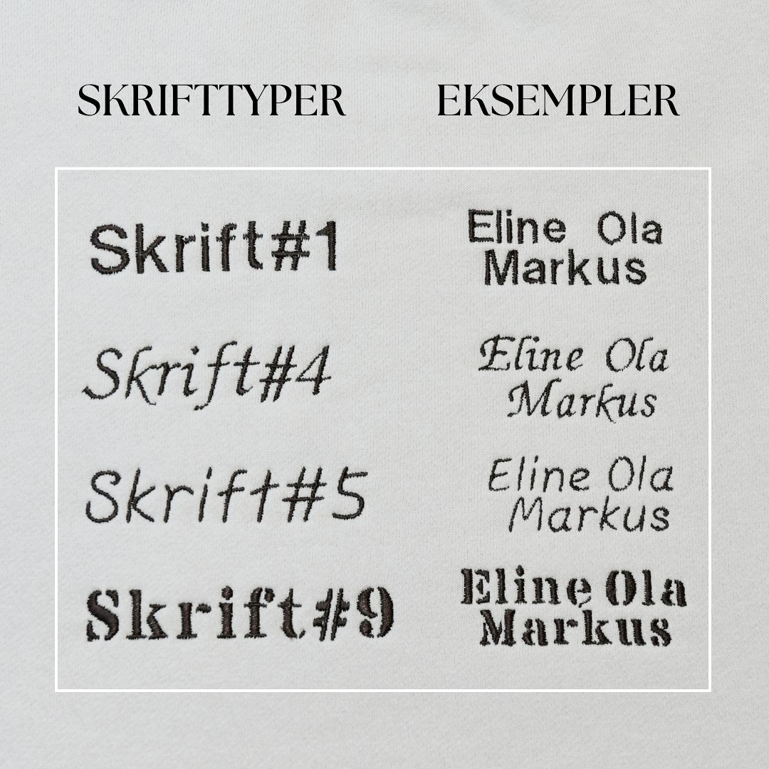Brodering er GRATIS på dette produktet. Skriv navnet eller ønsket tekst med BLOKKBOKSTAVER dersom du ønsker at navnet skal bli stort. Dobbelt navn blir brodert i to linjer.