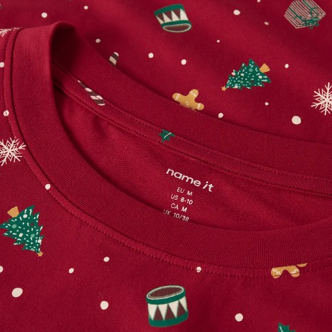 Matchende julepysj fra Name It gjør det enkelt å skape en gjennomført stil i julen. Pyjamasen er laget i 95% bomull og 5% elastan, noe som gir en myk følelse mot huden samtidig som den er lett og behagelig å bevege seg i. Stoffet er pustende og slitesterkt, perfekt til både lek på dagtid og koselige kvelder hjemme.
