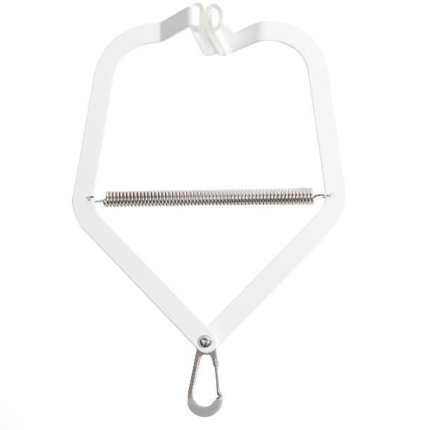 Du kan ta med vuggen din under armen uansett hvor du skal, så lenge det finnes en dørkarm i nærheten. Karmbeslaget gjør det nemlig enkelt å henge opp slyngevuggen med vuggemotor i en dørkarm – både hjemme og når dere er på besøk hos venner og familie. Dette er et nytt forbedret design som har en fastmontert karabinkrok med gummiisolering, noe som gjør at den er rask og enkel å montere – og samtidig sikret mot metallsplinter.