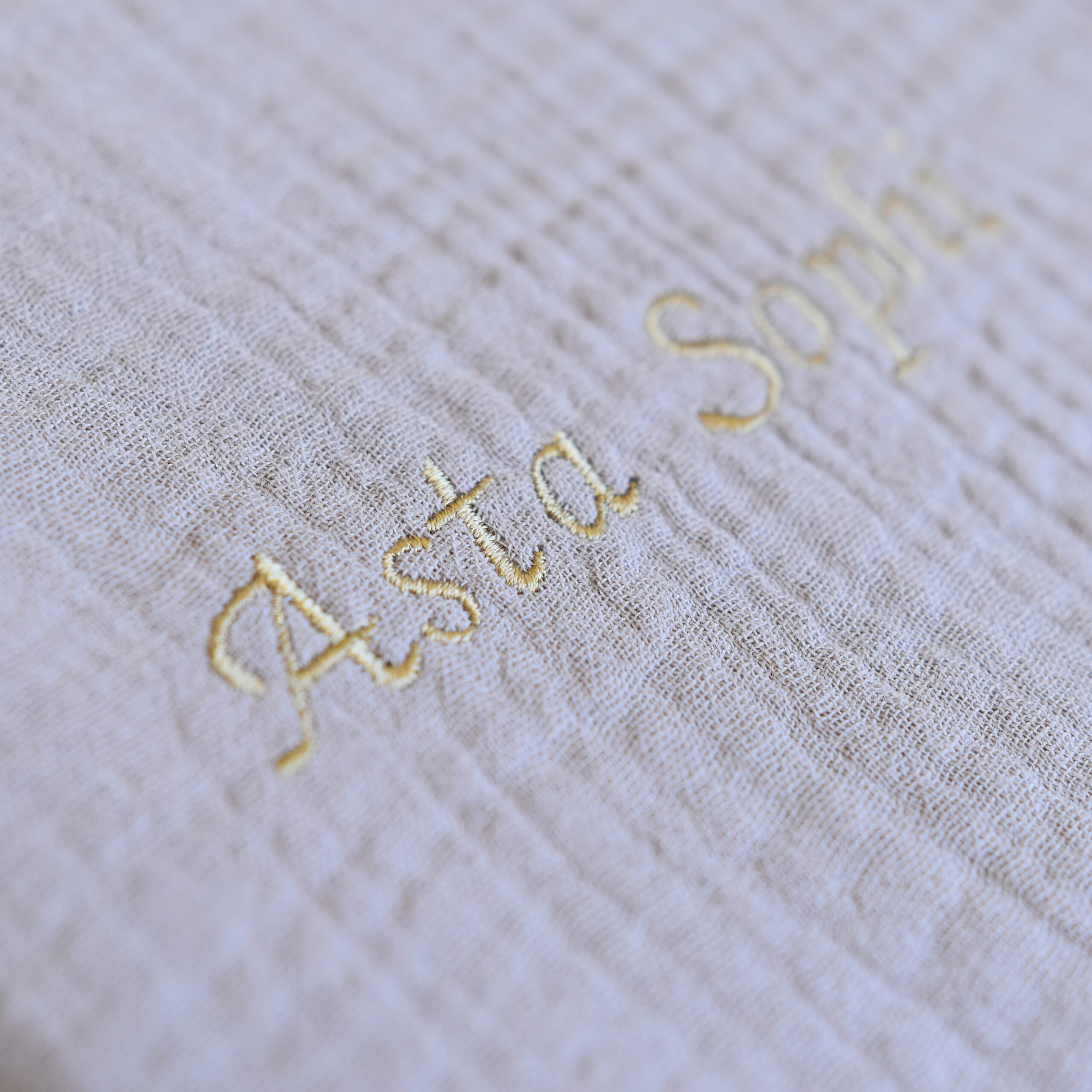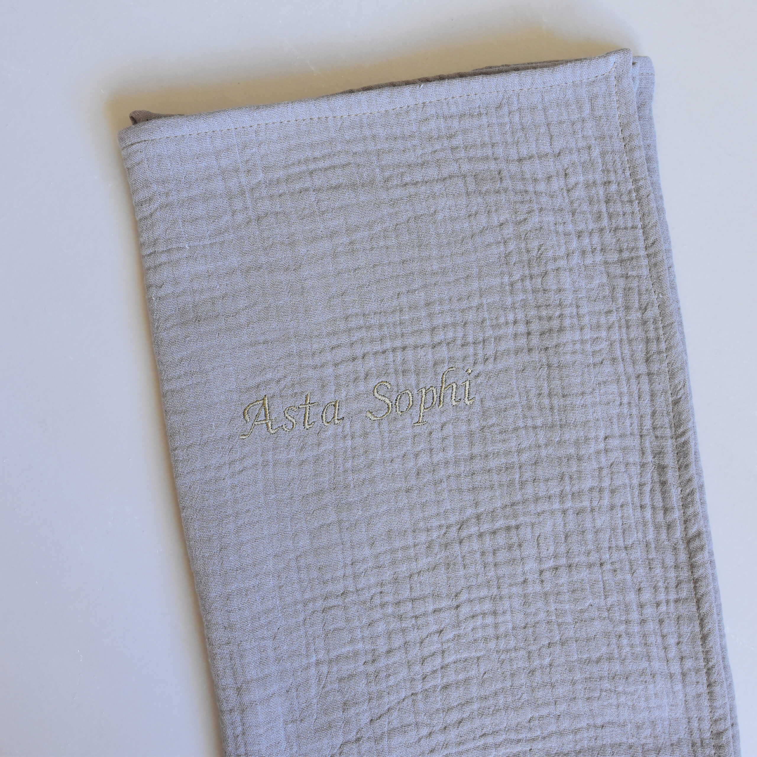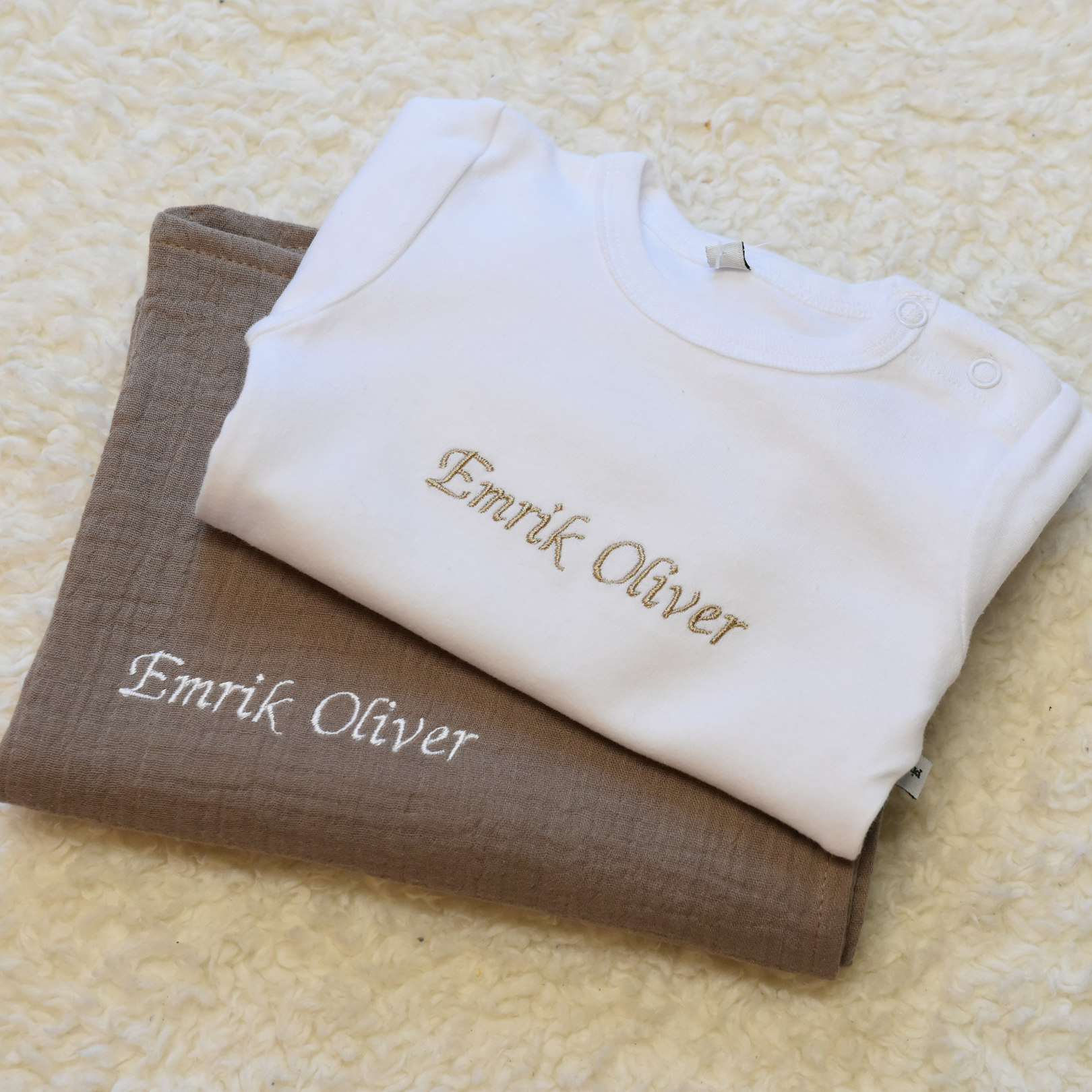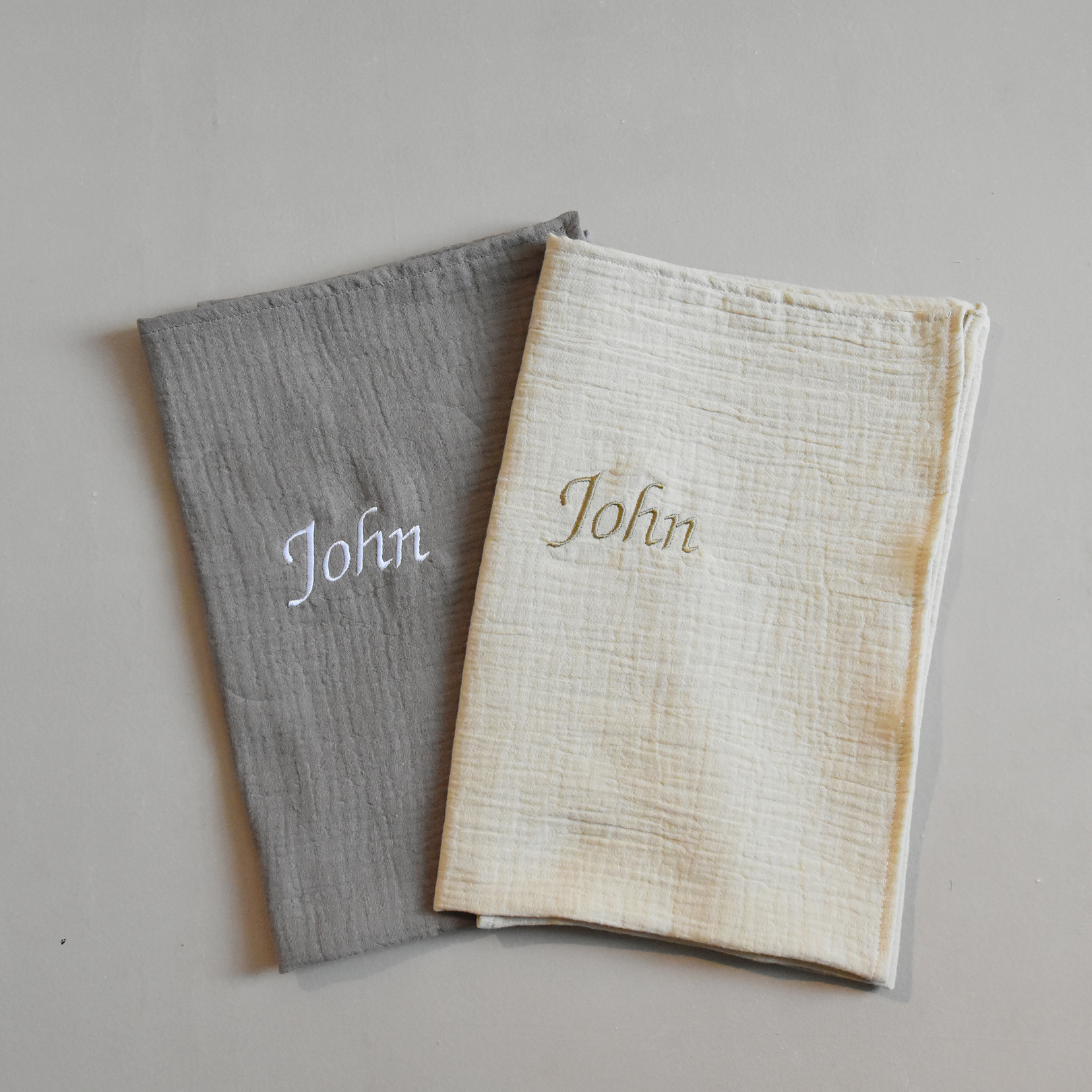 Koseklut gulpeklut med navn er laget av musselin bomull som føles behagelig mot huden. Kan brukes til alt- som sutteklut, koseklut, gulpeklut osv. Velg mellom to nydelige farger.