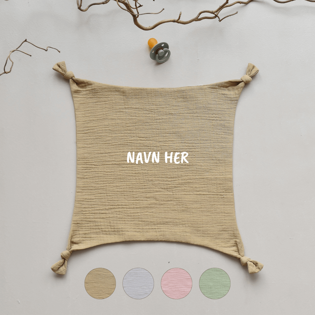 Kosekluten er lett, pustende og trygg å sutte på, tåler både daglig bruk og vask. Koseklut med knuter og navn er en enkel og trofast følgesvenn for den lille. Velg din favorittfarge eller kanskje to og la kosen bli en del av deres hverdag.