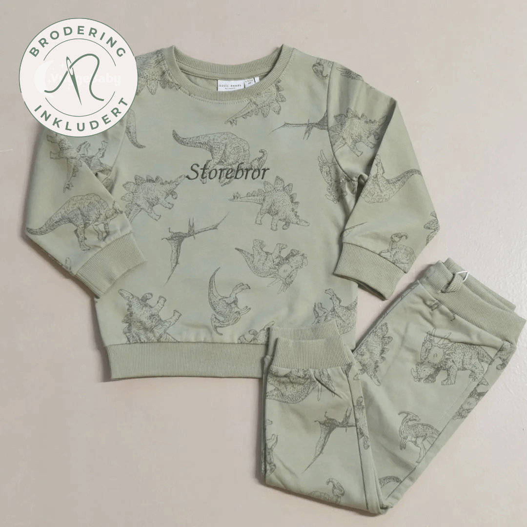 NameIt dinosaur joggedress med navn BASIC sett fra Name it. Fremstilt av 100 % bomull med ubørstet sweatstoff som har en glatt overflate. Denne prisen inkluderer brodering av navn. Ønsker du uten brodering? Trykk her.