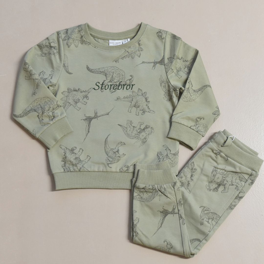 NameIt dinosaur joggedress med navn – Gi barnet ditt et unikt og komfortabelt antrekk med denne tøffe dinosaur joggedressen. Settet kombinerer høy kvalitet med et moderne design, perfekt for lek og hverdagsbruk. Denne prisen inkluderer brodering av navn. Ønsker du uten brodering? Trykk her.
