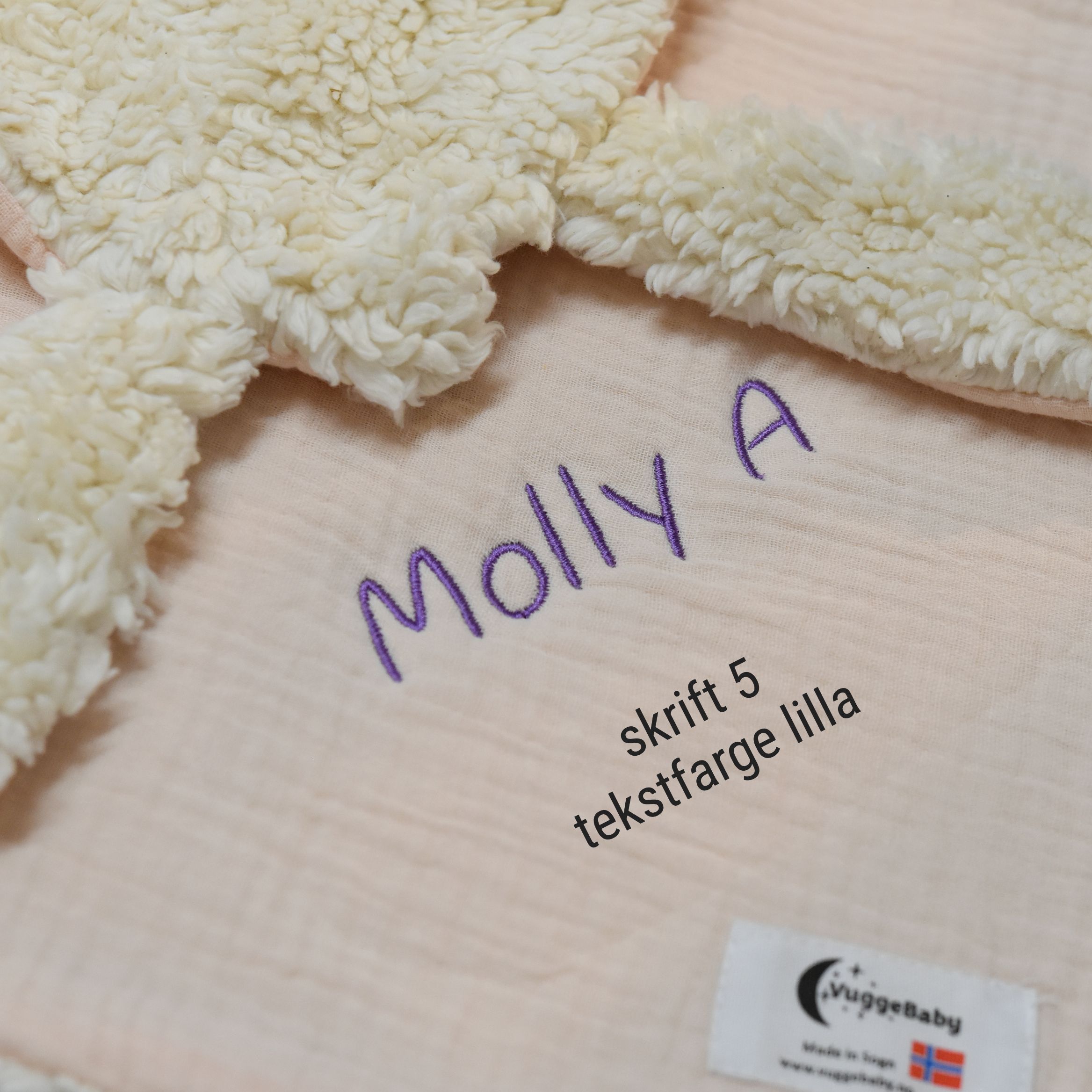 Slik bestiller du brodering på vår økologisk koseklut med navn: