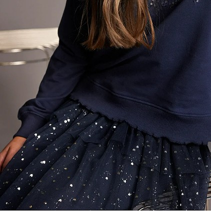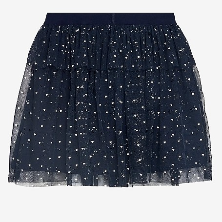 Nydelig navy mesh-skjørt fra Creamie med hjerteprint i sølv farge som gir et lekkert uttrykk. Skjørtet har en myk og bred strikk i livet som sikrer god passform og komfort. Med god vidde og mye fylde blir dette et skjørt som faller fint og gir en elegant silhuett.