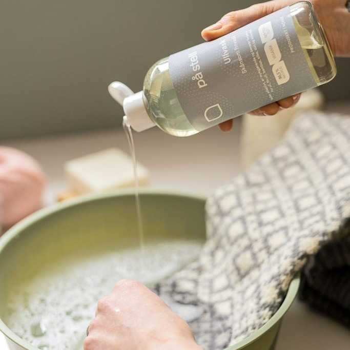 Ullvask 500ml | Påstell er drøy i bruk; én flaske rekker til hele 33 vask. Vasker effektivt, er mykgjørende og bevarer fargene. For ull, fin ull, bambus, silke, dun og skinnfell.