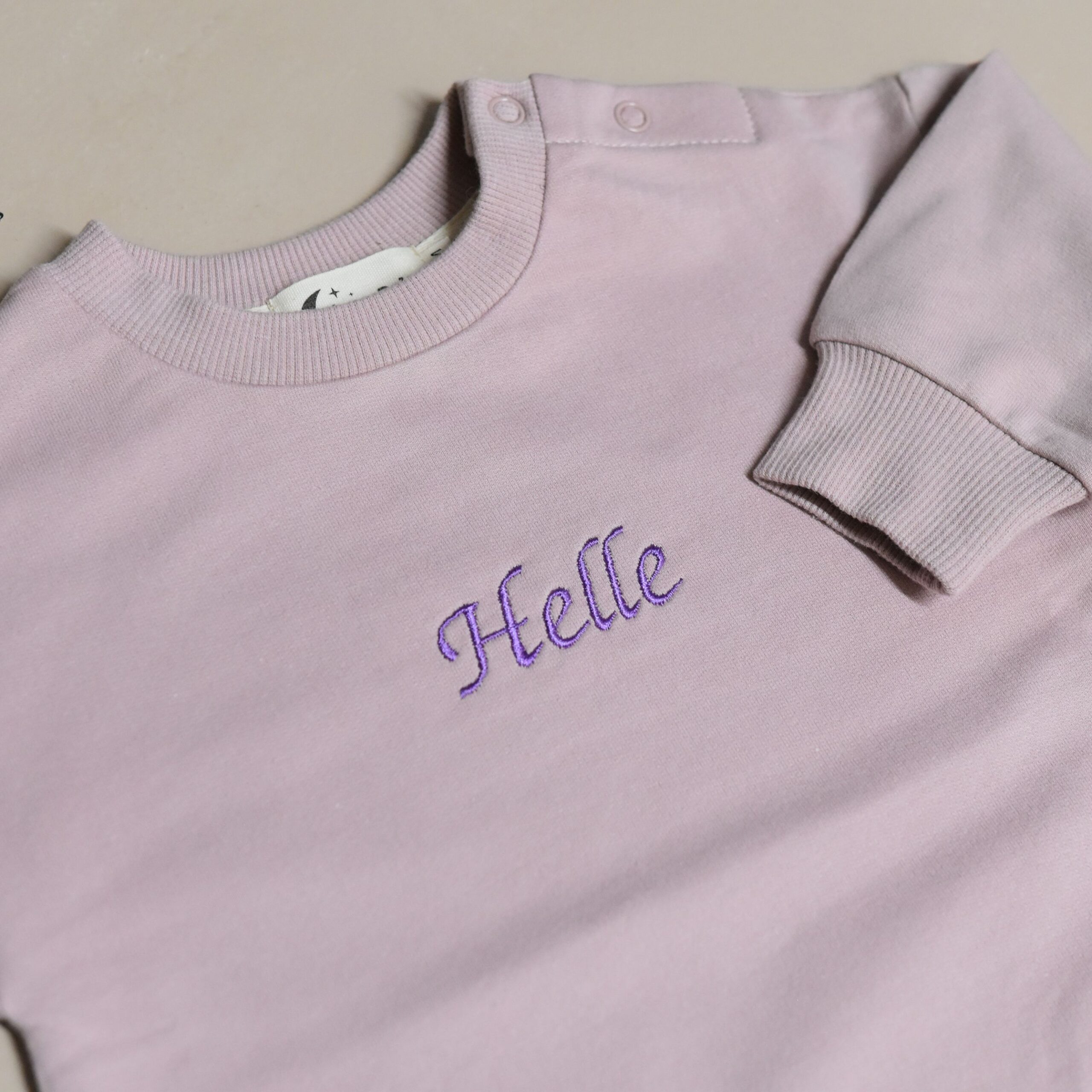 Slik bestiller du brodering på Vuggebaby økologisk Plum genserbody: